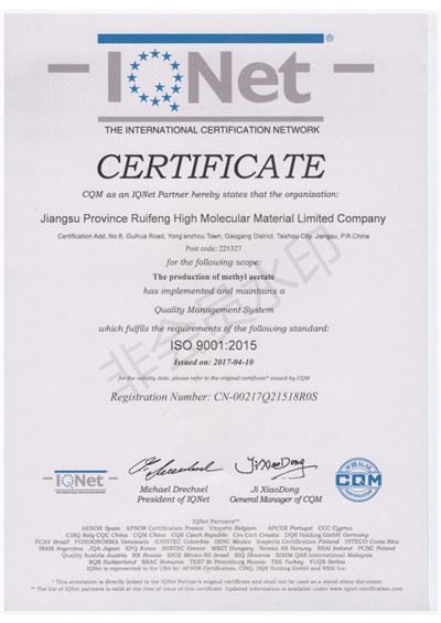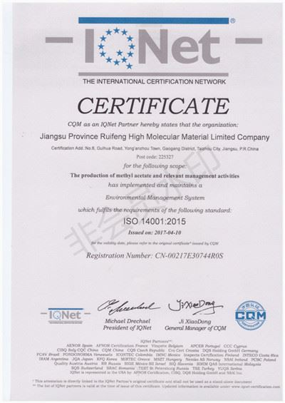 अन्हुई रुईबाई न्यू मैटेरियल्स कंपनी लिमिटेड (ताइझोउ रुईबाई केमिकल कंपनी, लिमिटेड) की स्थापना 2009 में हुई थी। हम Huaibei Anhui/ताइझोउ जियांग्सू में पता लगाने, बहुत सुविधा परिवहन नेटवर्क के आसपास के साथ । लक्ष्य के साथ हमारे उत्पाद और सेवा हमारे ग्राहकों की पहली पसंद हो, रुईबाई मिथाइल एसीटेट, एथिल एसीटेट, हिमनदों एसीटिक एसिड और मेथिलीन क्लोराइड के उत्पादन और वितरण पर केंद्रित है, 300000 मीट्रिक टन से अधिक वार्षिक बिक्री मात्रा। RUIBAI का विस्तार और विकास जारी है, हम पहले से ही पहुंच प्राप्त करते हैं, आईएसओ 19001, आईएसओ14001, OHSAS18001 प्रमाण पत्र।